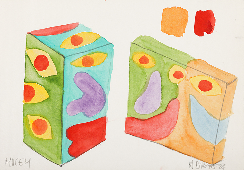Acrylique sur papier, signée et datée 2024 en bas à droite, annotée "Mucem" en bas à gauche.