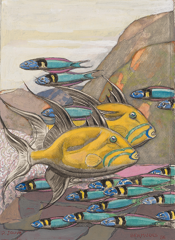 Crayon et gouache sur papier, signé en bas à gauche, situé et daté en bas à droite.