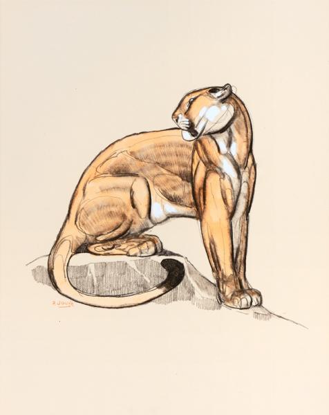 Deux tigres marchant en avant, tête à gauche, c. 1935