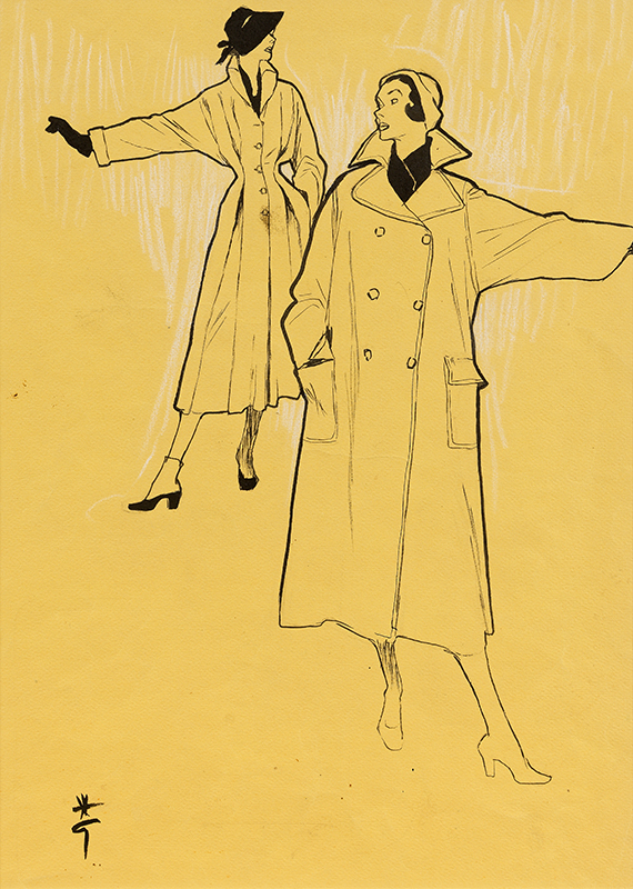Encre et craie sur papier de couleur, signée en bas à gauche.